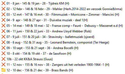 Hieronder staan de data! Groene gemarkeerd ? Die vertelling is al geweest!